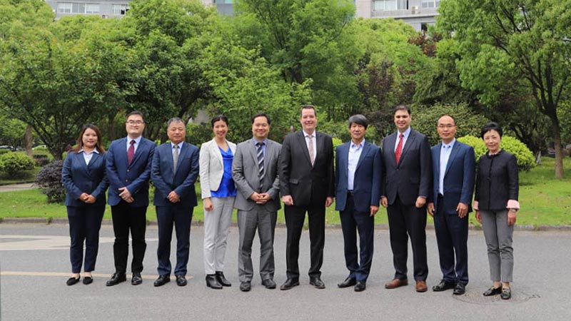 On April 28th, Consul General Mr. Dave Murphy and his delegation from the Consulate General of Canada in Shanghai visited Hangcha Group Hengfan industrial park, and had an in-depth exchange with Chen Weiqiang, Hangcha Group’s Technical Director, Li Yuansong, the Deputy Chief Engineer, Wu Jianxin, the General Manager of Zhejiang Hangcha Imp. & Exp. Co., Ltd.